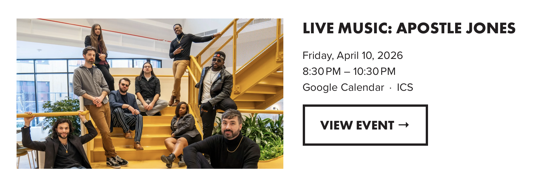 APOSTLE JONES is a fearless CLEVELAND based band, on an electric, style-bending mission: powerful vocals, virtuoso guitar riffs and raw soul to inspire! A spirited stage performance and an ascending experience is what Apostle Jones brings with spirit stomping roots of Rock’n’Roll and Soulful Blues to listeners. This Indie-Soul experience is authentic, saucy and colors outside the lines. Lead Singer-Songwriter for the band, Mikey Silas, originally born in the rock’n’roll capital Cleveland (OH), grew up in Chicago where his love for blues, theatre and soul music, expanded his songwriting and stage performance. Upon moving back to Cleveland, Mikey (singer/keys) united with current line-up Michael (guitar), Charde and Honey (BGV), Jinari (bass), Charlie Uncle Gnarly (Sax), Eric (trumpet), Owen (keys/bass) and Rashon Blake (drums). The group is made up of performing musicians from various disciplines and background.